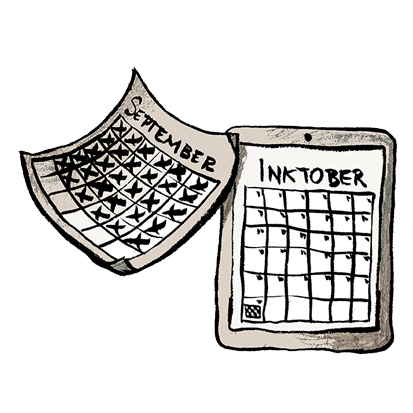 If you have no ideas, that's totally fine! You can find the official prompts from Jake Parker's website, who actually created the Inktober challenge back in 2009 and who kindly shares a list for each 31 days that you can follow.